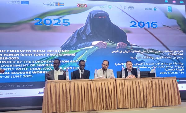 Assistance for Response and Development (ARD-Y) took part in the closing workshop of the Rural Resilience Project, which was implemented over three phases from 2016 to 2025, with joint funding from the European Union and the Government of Sweden, in the governorates of Abyan, Taiz, and Lahj.