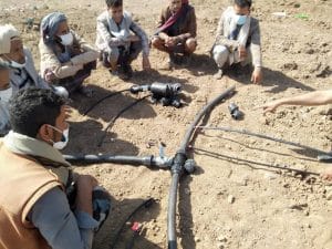 تدريب وتوزيع وتركيب شبكات الري بالتقطير لصغار المزارعين في مديرية التعزية