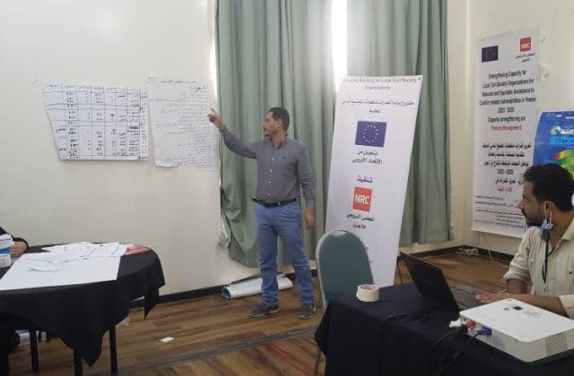 ضمن مشروع بناء قدرات منظمات المجتمع المدني المحلية لتعزيز قدراتهم لتقديم المساعدة المناسبة والعادلة لمواطن الضعف المرتبطة بالنزاع في اليمن والممول من الاتحاد الاروبي والمنفذ عبر NRC