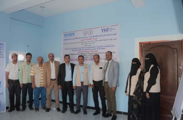 ضمن مشروع تحسين ضروف المأوى والمسكن المستدام للاشخاص المتأثرين بالأزمة الممتده من خلال توفير حلول مأوى مستدام في تعز في مديريات صاله والمظفر ومقبنه ،والممول من صندوق التمويل الإنساني UN OCHA Yemen YHF نفذت مؤسسة العون للاستجابة والتنمية ARD -Assistance for Response and Development الشريك المنفذ لمنظمة الامم المتحدة للمستوطنات البشرية UN-Habitat بالعربية ،الورشة الافتتاحيه للمشروع بحضور السلطة المحلية ممثلة بمدراء عموم المديريات المستهدفة ونائب مدير عام الشؤون الاجتماعية والعمل ،حيث يهدف المشروع الى الوصول الأمن للمسكن من خلال حزمه من الأنشطة تتمثل في تأهيل منازل العائدين الاكثر تضررا واحتياجاً في مديرية المظفر وتقديم المساعدات النقدية المتعلقة بالايجارات في صاله والمساعدات المتعلقة بصيانة المأوى الانتقالي في مقبنه.